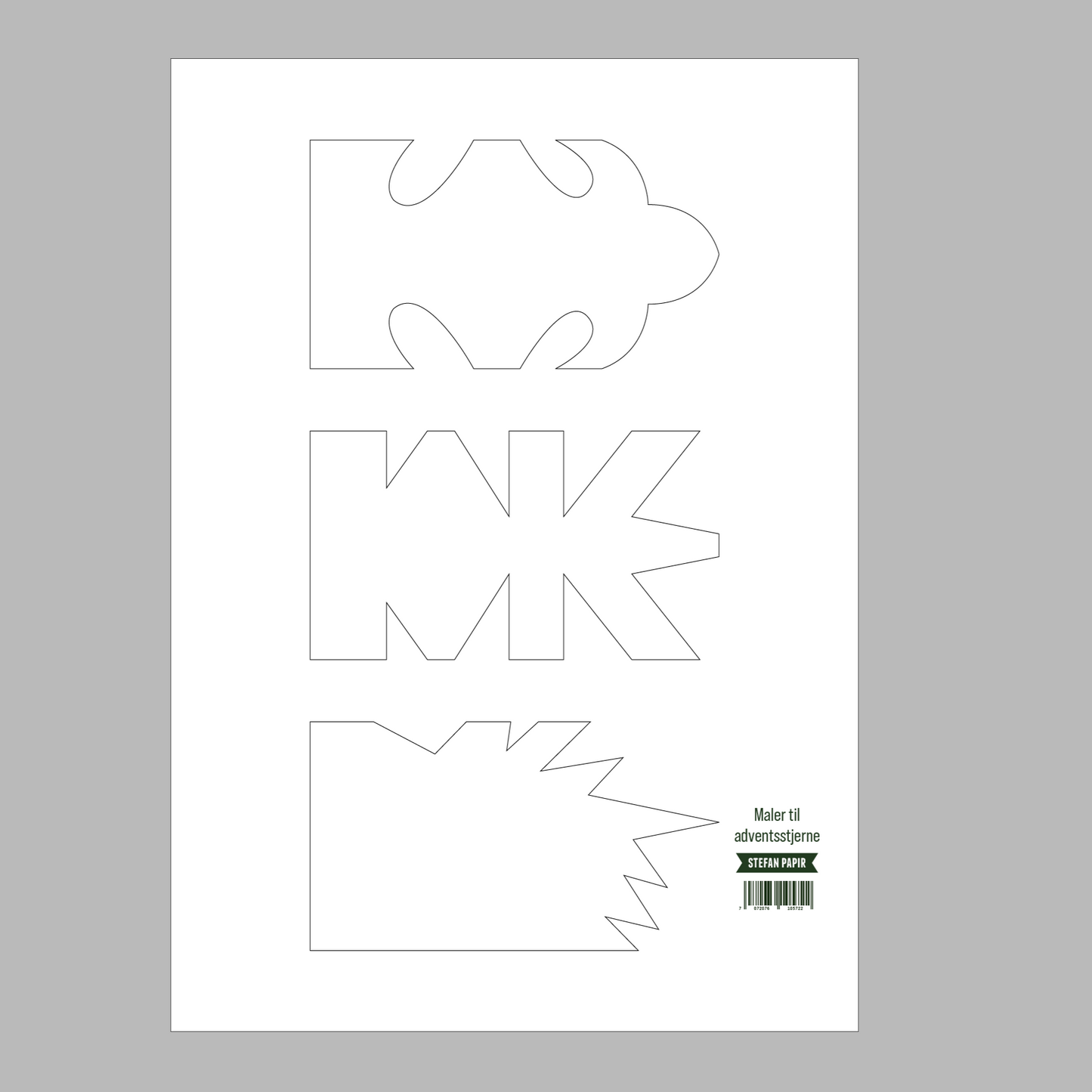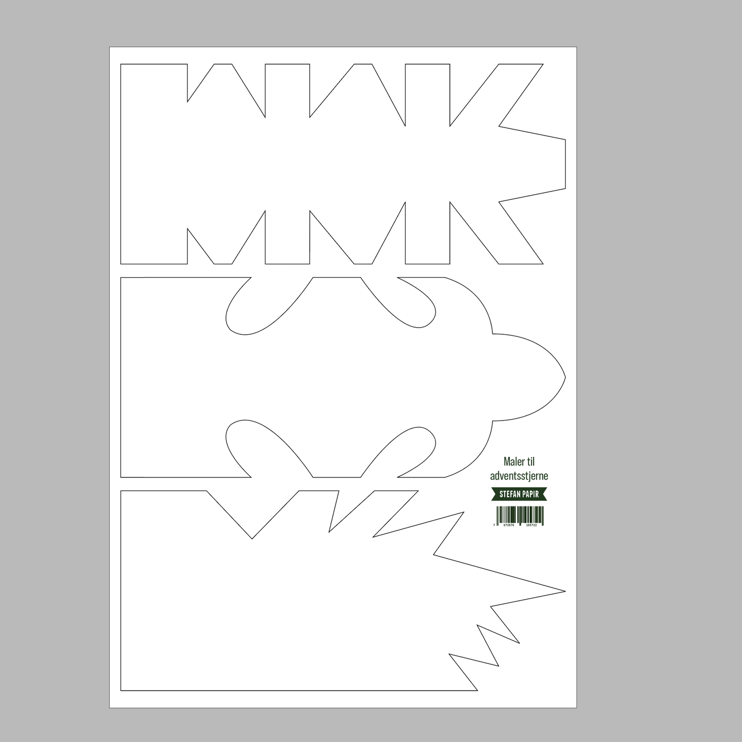 Oppskrift til å lage dine egne adventsstjerner. Printet på et A4-ark med steg for steg instruksjoner. Sammen med oppskriften finner du også 2 ekstra ark i tykk kartong med maler til 3 ulike stjerner i 2 ulike størrelser. Etterhvert kan du kan også tegne opp dine egne maler!